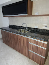 Bajo mesada con cajones y puertas con sus respectivos herrajes, mesada de Granito Negro boreal, grifería Mono comando Gloa y pileta de acero inoxidable marca Johnson 304 Modelo Luxor Mini.